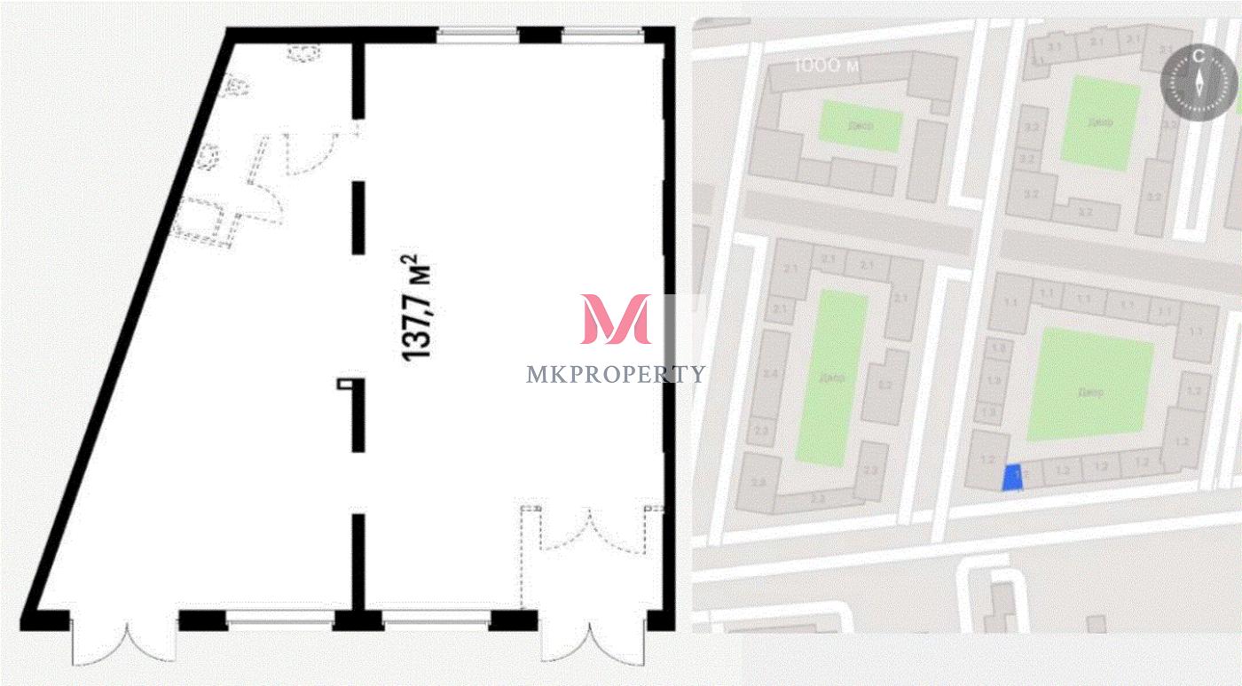 - Тип объекта: торговое помещение на 1-м этаже, в стилобате