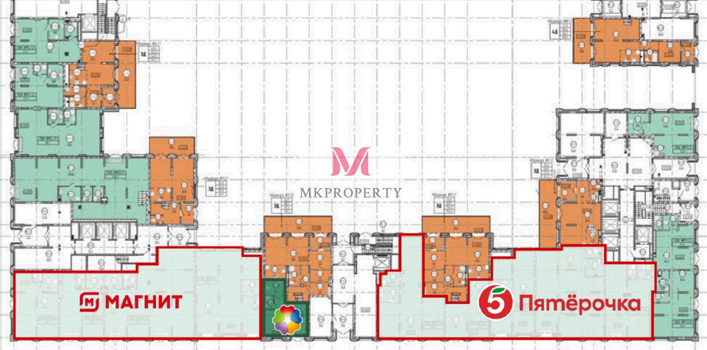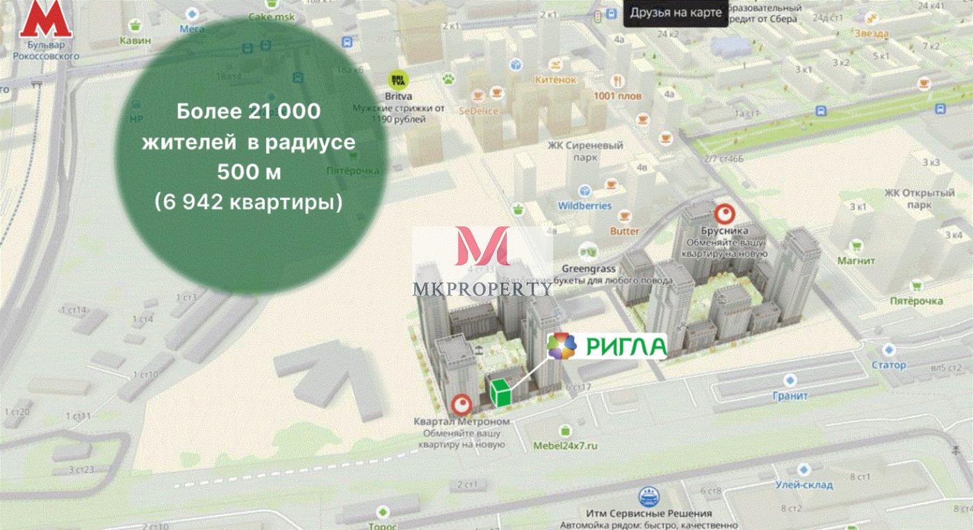 - Трафик: интенсивный автомобильный и пешеходный трафик, ЖК комфорт-класса на 2 628 квартир, все квартиры сдаются в предчистовой отделке, более 6 942 квартиры в радиусе 500 м.