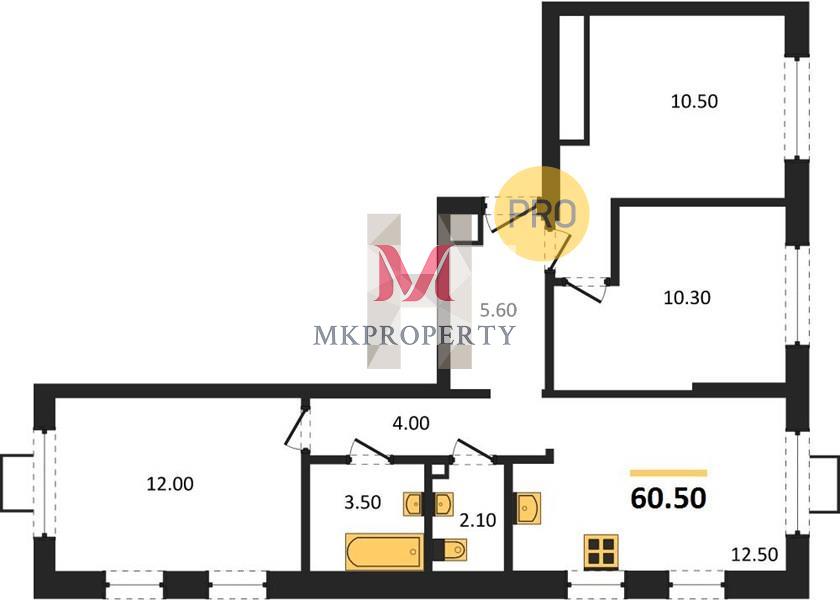 • Общая площадь 60.5 м²