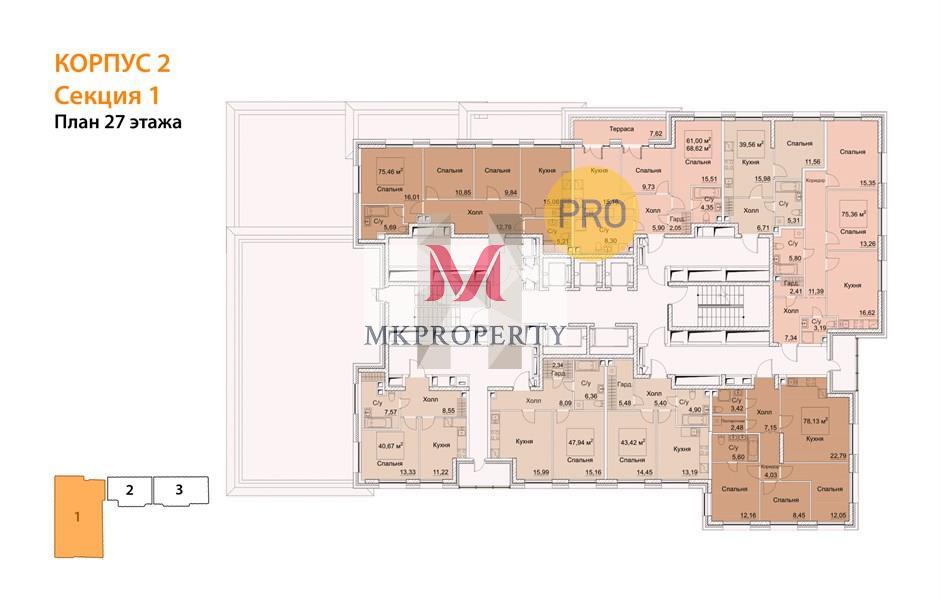 2-к.квартира 75.36 м², 27/28 эт. 42 804 480