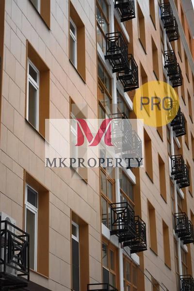 Роскошные входные группы, отделанные мрамором, с высотой потолков 4,5 м, белыми лепными карнизами и стойкой ресепшн с авторской отделкой создают атмосферу уюта, полностью отражая дух и воплощение уникальной архитектурной концепции 30-40 годов, являясь ее логическим продолжением.
